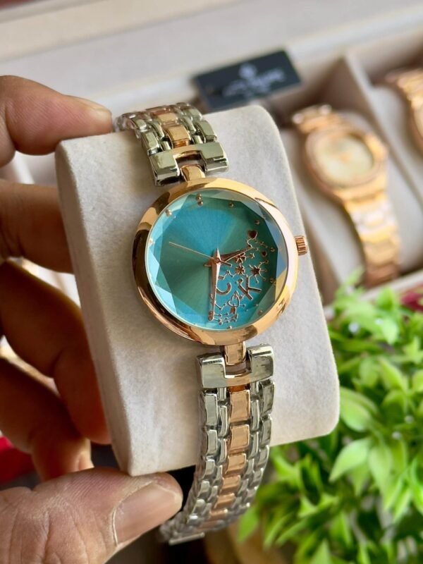 This elegant rose gold watch exudes sophistication with its intricate floral design and shimmering finish, making it a perfect blend of style and grace.