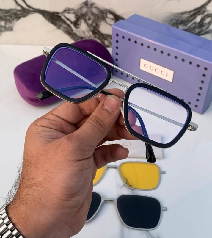 Gucci 3 in 1 Sunglass Silver Magnetic Frame