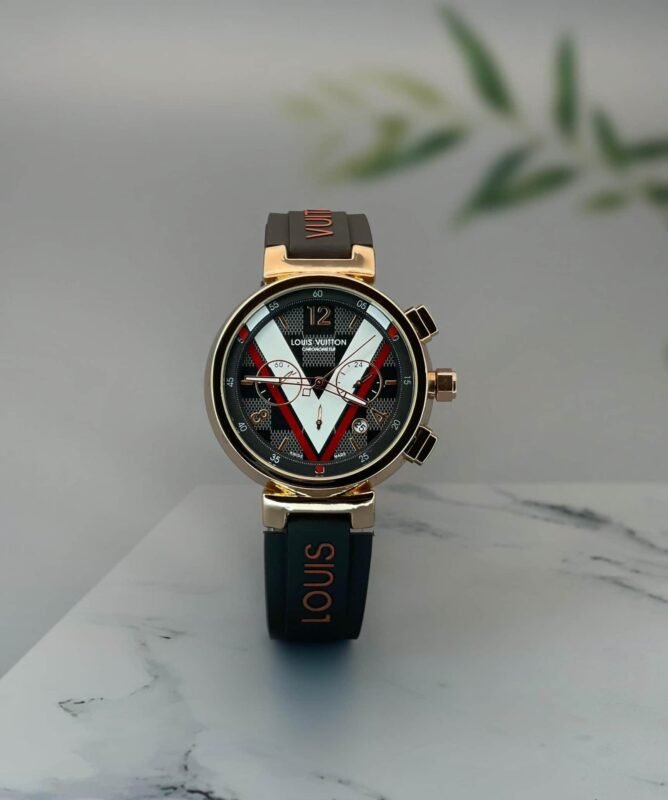 Perfect for casual and sporty looks, this new version of Louis Vuitton’s emblematic Tambour watch is inspired by the House’s iconic Damier