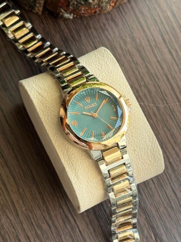 This elegant Rolex watch exudes luxury with its stunning gold and silver design, impeccable craftsmanship, and timeless sophistication.